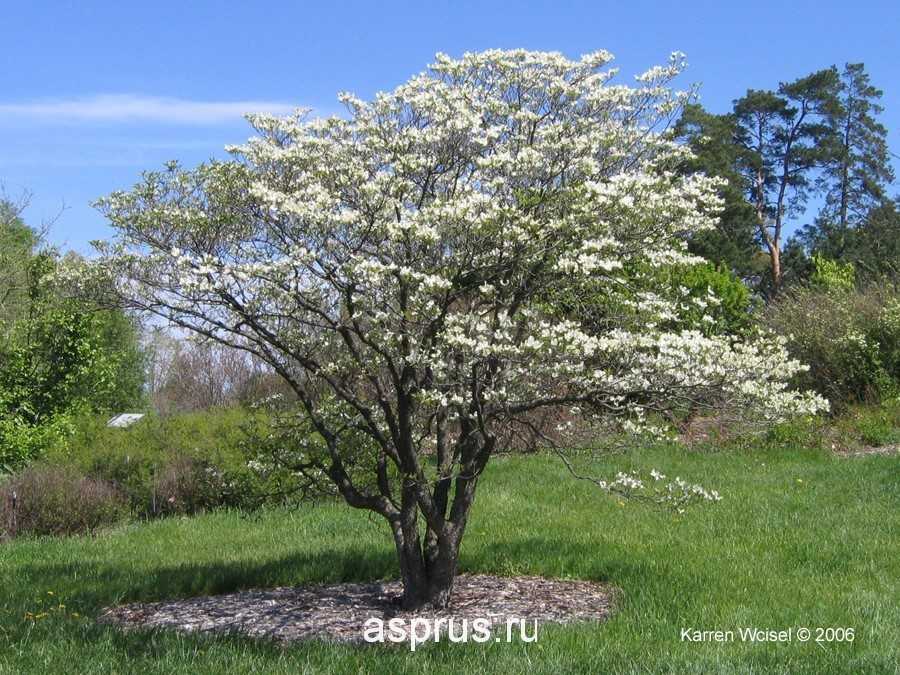 Цветущий кизил – красивое деревце с шарообразными бело-зелеными или золотисто-желтыми соцветиями, окруженными белыми или красными лепестковидными брактеями. Благодаря своему строению соцветие похоже на один большой цветок.