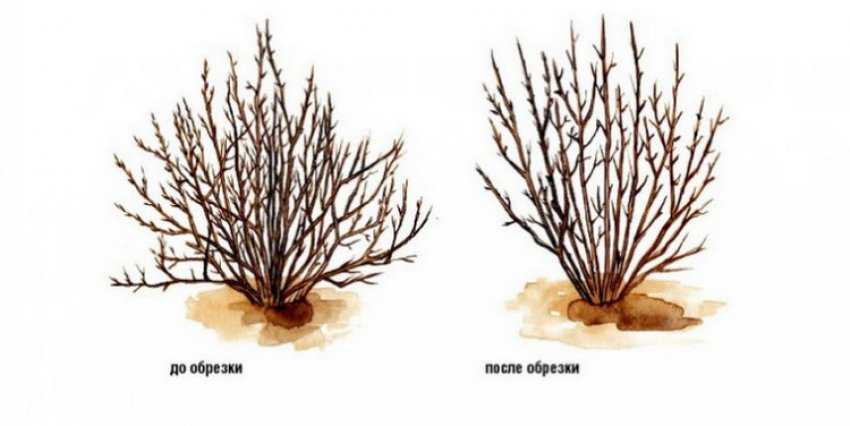 В марте осуществляют санитарную обрезку. Удаляют все сухие и травмированные ветки. Кусту оставляется 4–5 плодоносящих ветвей. В этот же период, если есть необходимость, выполняют формирующую обрезку.