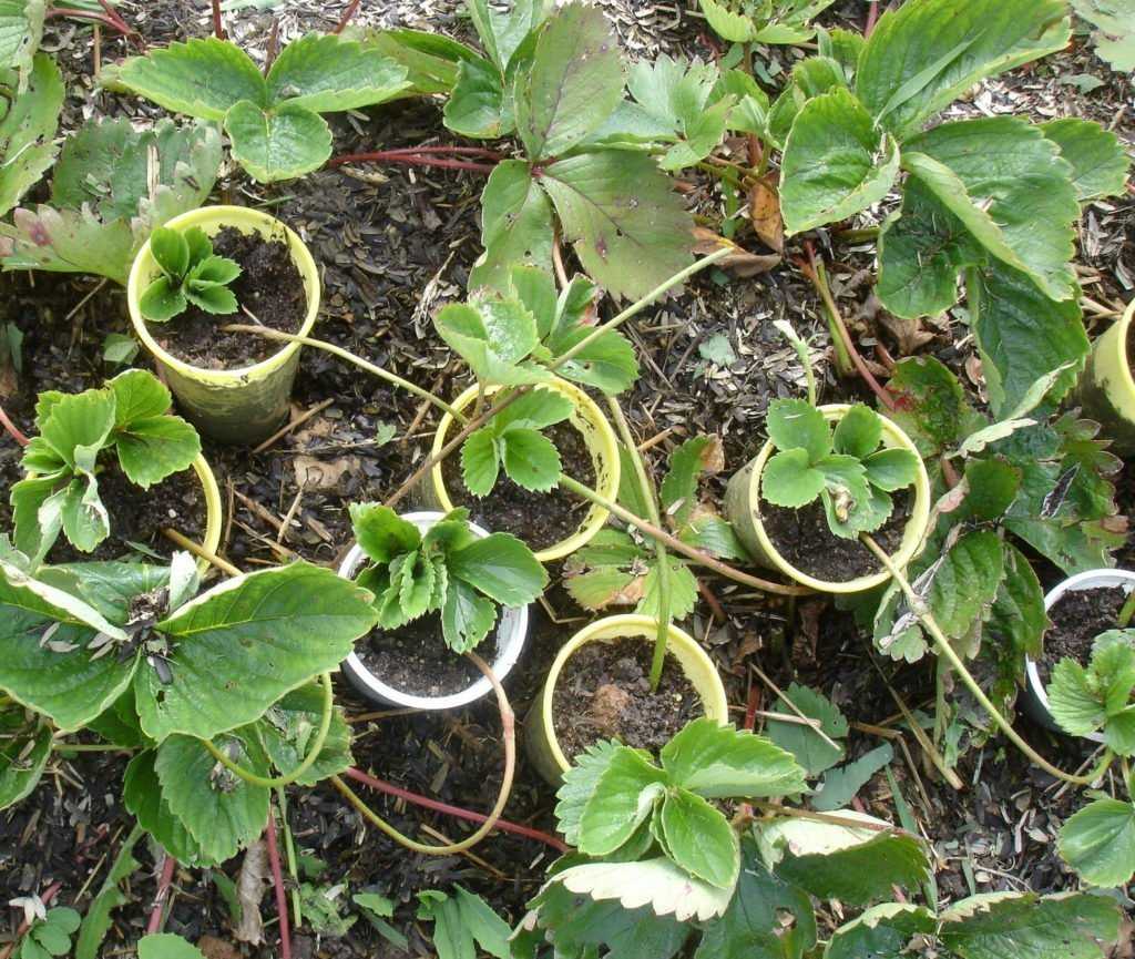 Для размножения садовой земляники этим методом удобно использовать такие же ёмкости с питательным грунтом, как и для посадки семян. Процесс заключается в следующем: