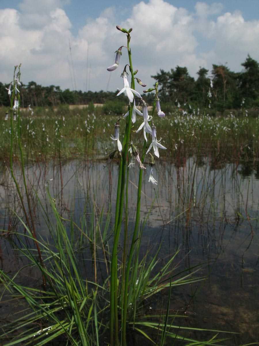 Лобелия Дортмана (Lobelia dortmanna) – исчезающее растение, занесенное в Красную книгу. В диком виде многолетник обитает по берегам озер и рек, а также в водоёмах на глубине 70-80 см. После того как стебли растения достигают черты водного покрова, начинается цветение. Цветы лобелии Дортмана колокольчиковой формы белого, голубого цвета.