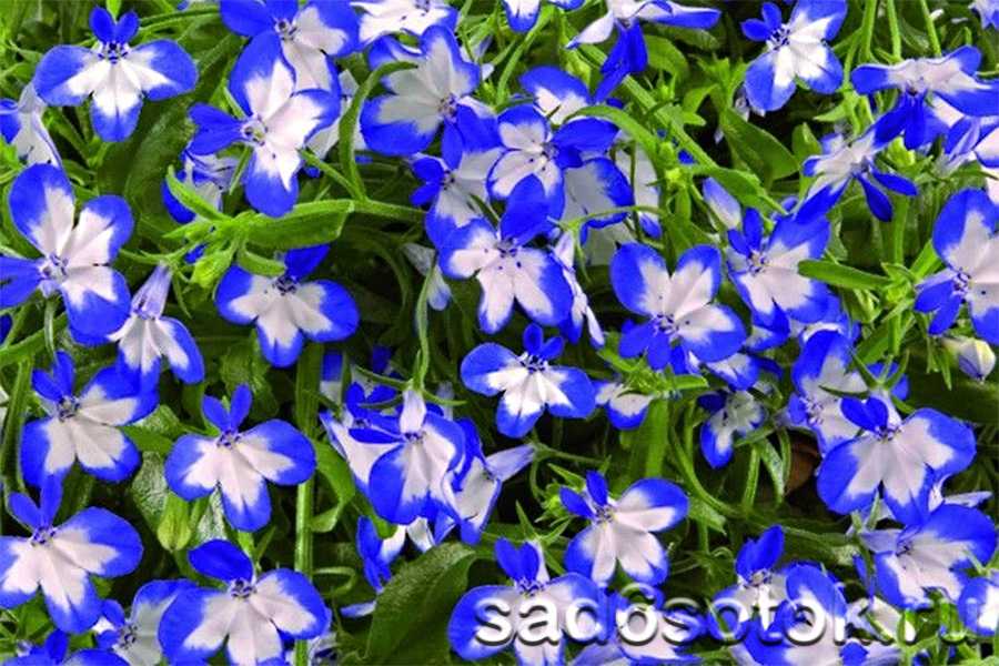 Лобелия синяя (Lobelia erinus) или бордюрная – высокое растение родом из Америки, стебли прямостоячие, цветки голубого цвета. Интересный вид из-за большого размера. Растение достигает высоты 80 см. Синяя лобелия расцветает в конце лета, полностью устойчива к морозу. Подходит для срезанного цветка.