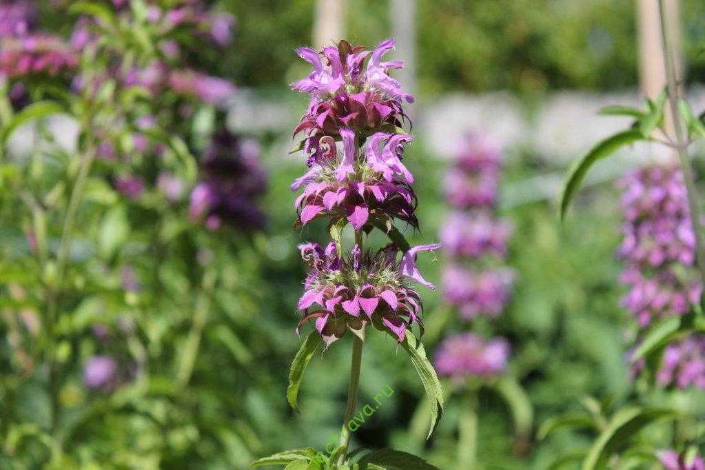 Или лошадиная мята, выращиваемая по большей части не из-за цветов, а ради прекрасных, ярких, лососевого цвета листьев, которые окружают соцветия. В высоту растение достигает 80 см.