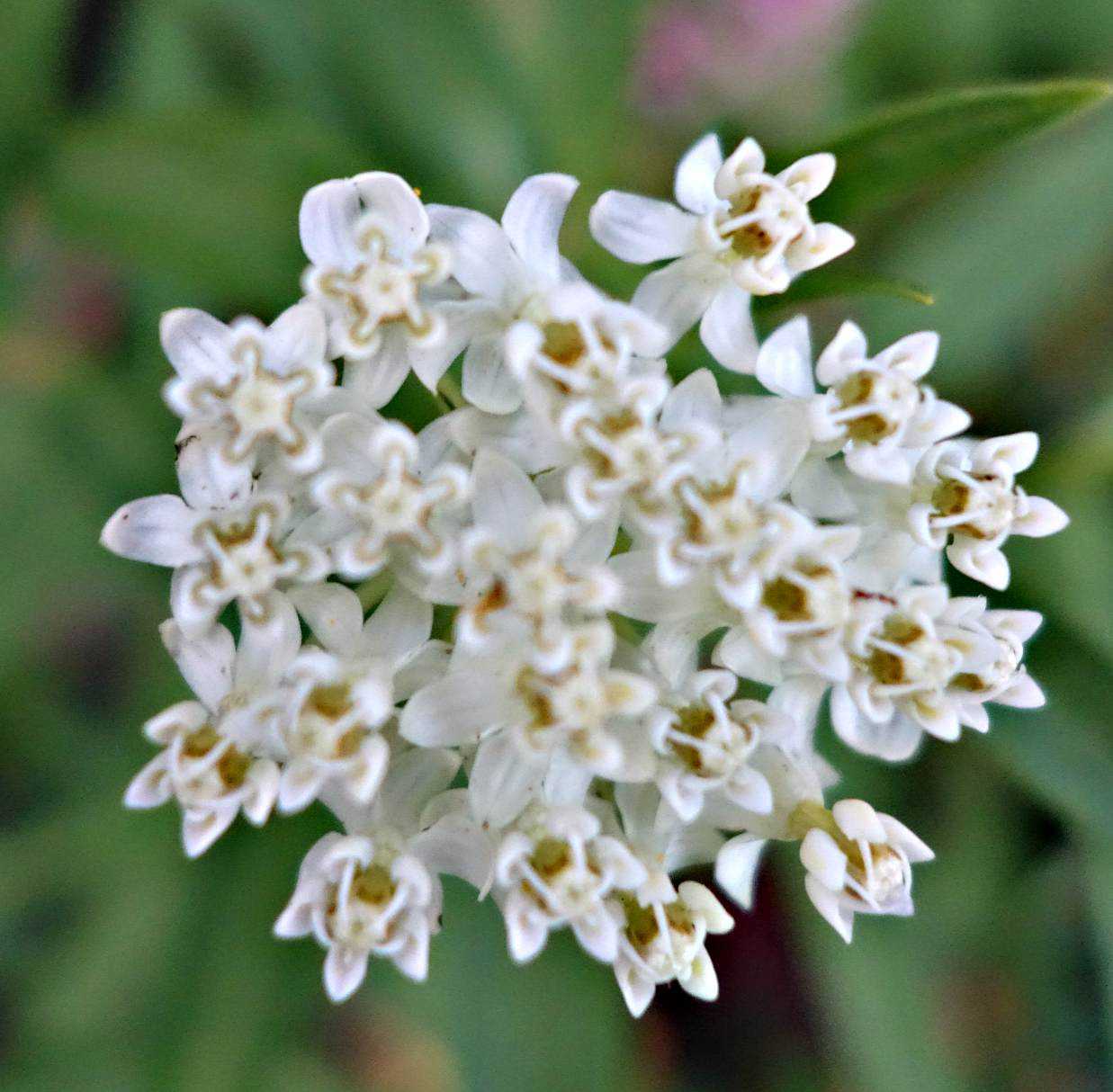 листья имеют ланцетовидную форму. Цветки мелкие, собраны в зонтиковидные соцветия. Окраска белая или розовая. Некоторые цветки имеют пурпурный оттенок. Цветет культура с середины лета, а сам период цветения продолжается на протяжении одного месяца;