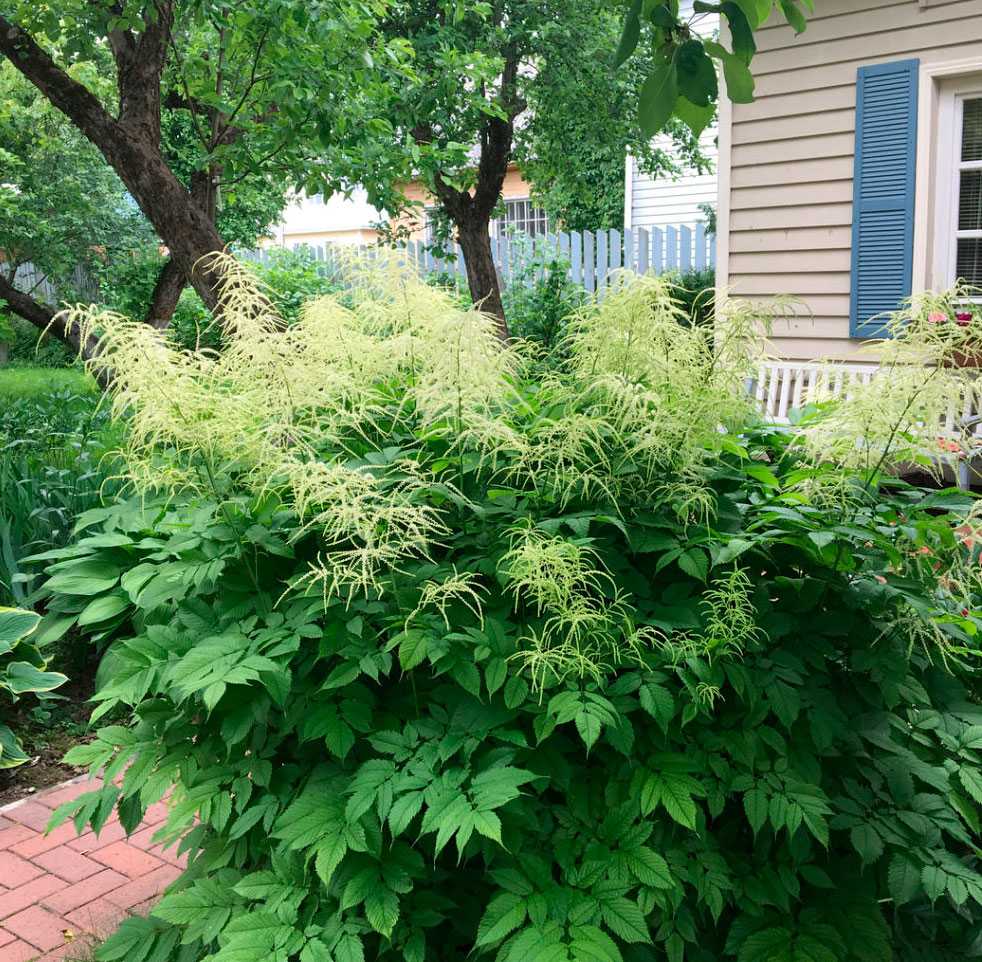 Многолетник волжанка обыкновенная формирует густые заросли, которые в высоту могут достигать около 200 см. С июня по июль кусты украшают длинные метельчатые соцветия. Эта травянистая культура является очень тенелюбивой. Она неприхотлива и нетребовательна в уходе. При этом цветок растет на любом грунте и не нуждается в пересадке на протяжении многих лет. Отличается высокой устойчивостью к вредителям и заболеваниям, а также он выдерживает сильные морозы.