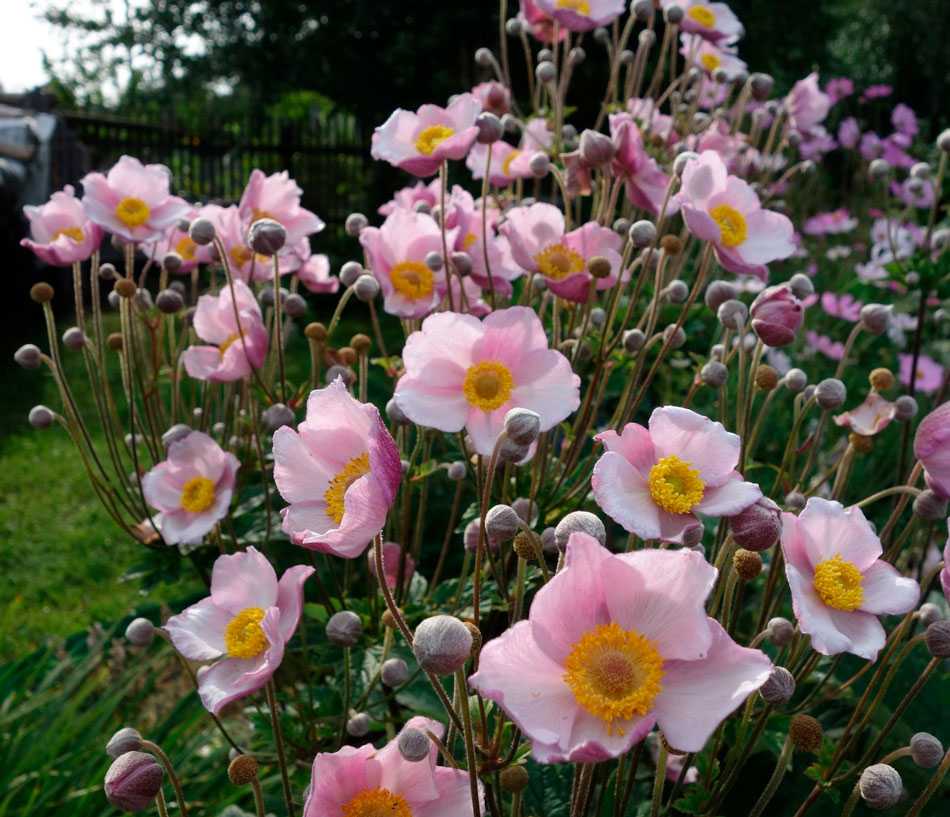 Японская анемона предпочитает расти на частично затененном участке в суглинистом песчаном грунте с повышенной влажностью. Высота куста около 0,9 м. Цветение наблюдается в последние летние недели, чаще всего цветки окрашены в розовый оттенок.