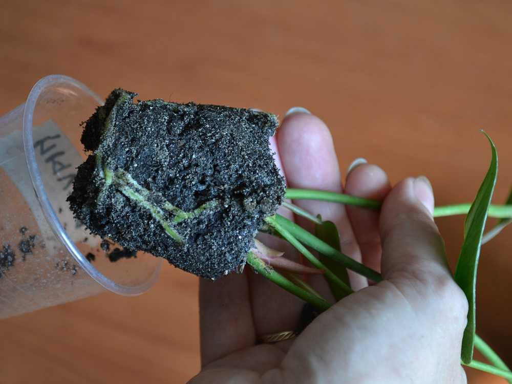 Обстучите и помните емкость с растением, осторожно выньте корневую систему вместе с земляным комом.