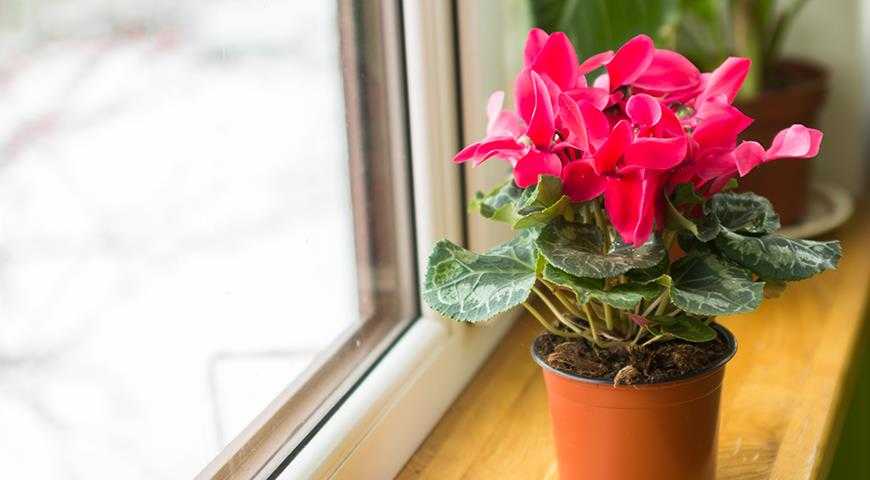 В комнате горшок с цикламеном размещают в самом прохладном месте, например между рамами окна с ярким светом, но без прямых полуденных солнечных лучей. Зимой содержат в очень светлом месте при температуре 12-14°С.