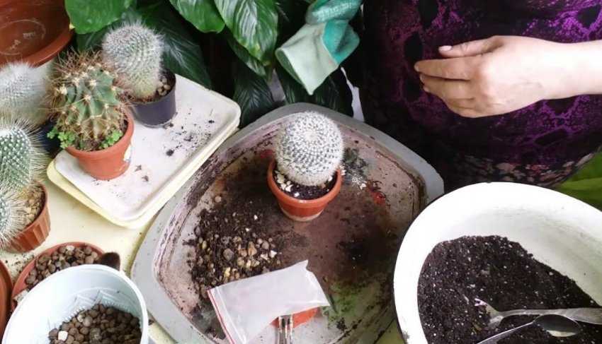 | Пересадка | Молодые кактусы следует пересаживать ежегодно, взрослые — в 2-3 раза реже. Слишком старые экземпляры уже не трогают, а просто каждую весну заменяют им верхние 5 см грунта. |