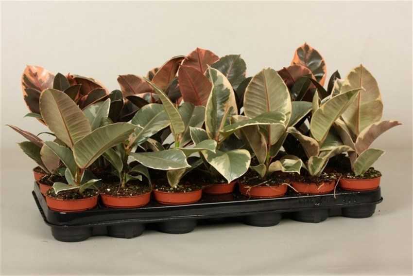 В процессе селекции были выведены следующие сорта фикуса каучуконосного, которые и похожи друг на друга (главным образом, формой и размером листьев), и имеют различия между собой: