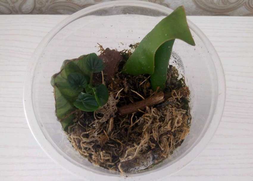 Справка! Для поддержания необходимой влажности саженцы первое время накрывают пленкой, парник регулярно проветривается. По такой же схеме укореняются листья пеперомии туполистной. Листья для размножения выбираются плотные, крупные, без повреждений.