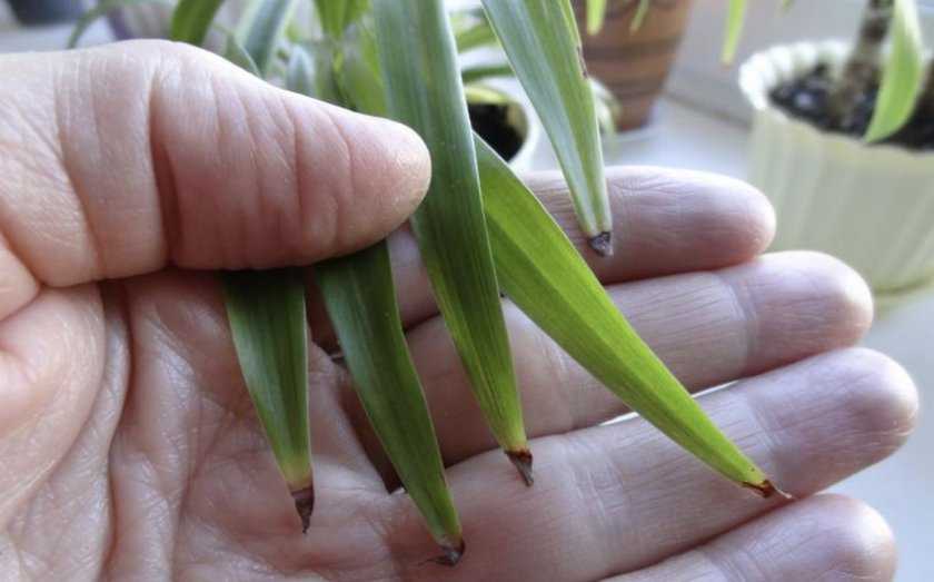 Показатель влажности в помещении — величина не стабильная: летом при проветривании влажность гораздо выше, чем в зимний период, когда работают отопительные приборы. Из-за сухости воздуха листва хлорофитума начинает желтеть и сохнуть.