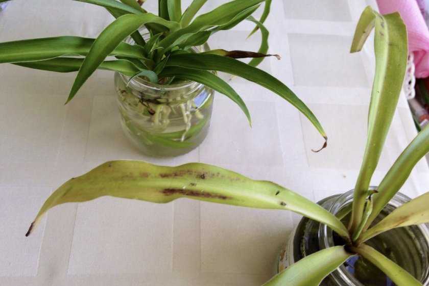 На здоровье хлорофитума одинаково плохо сказываются недостаток влаги и её избыток. При недостатке воды корневая система запасает воду, образуя утолщения. Питательные вещества поступают в зелёную часть в малом объёме, что приводит к торможению процессов фотосинтеза.