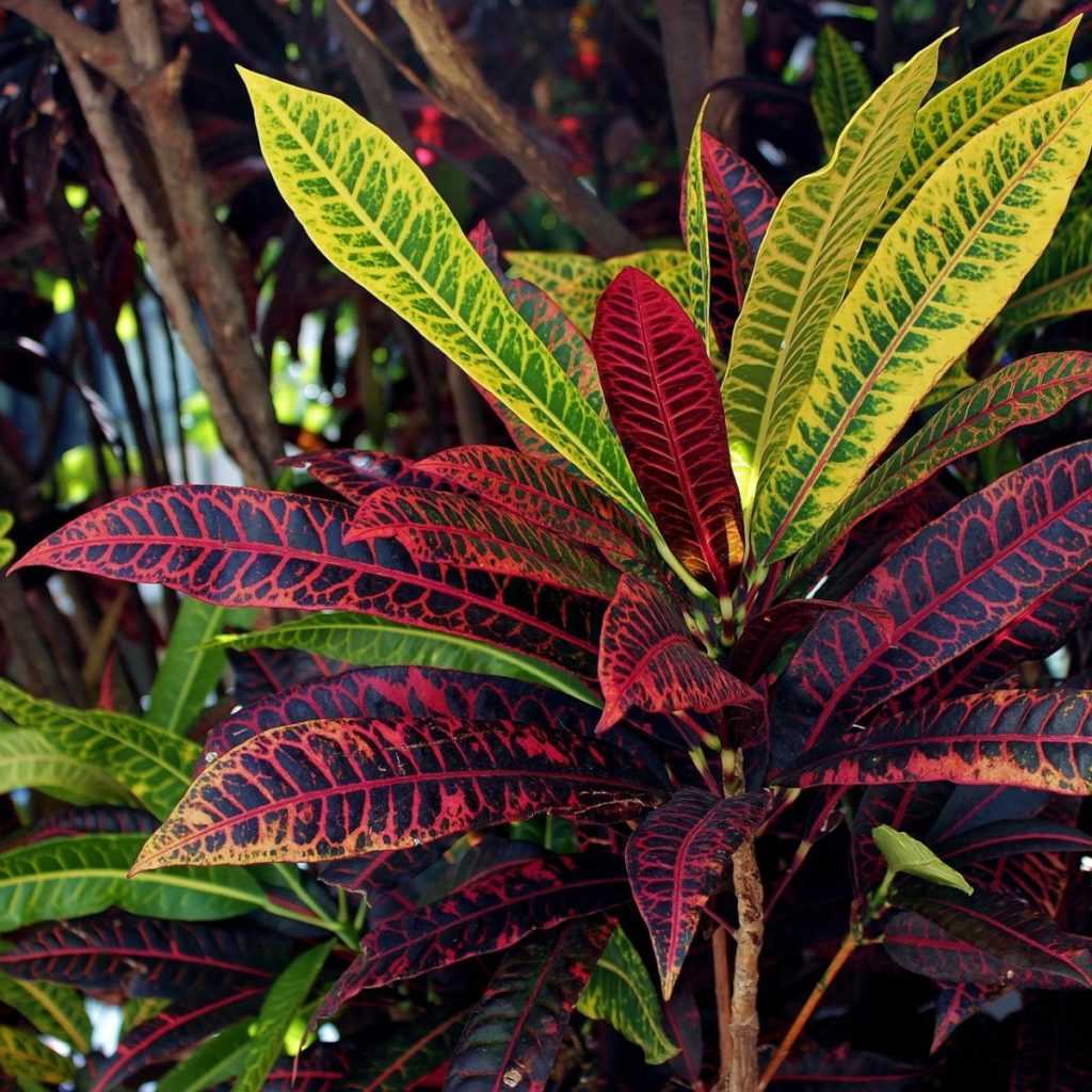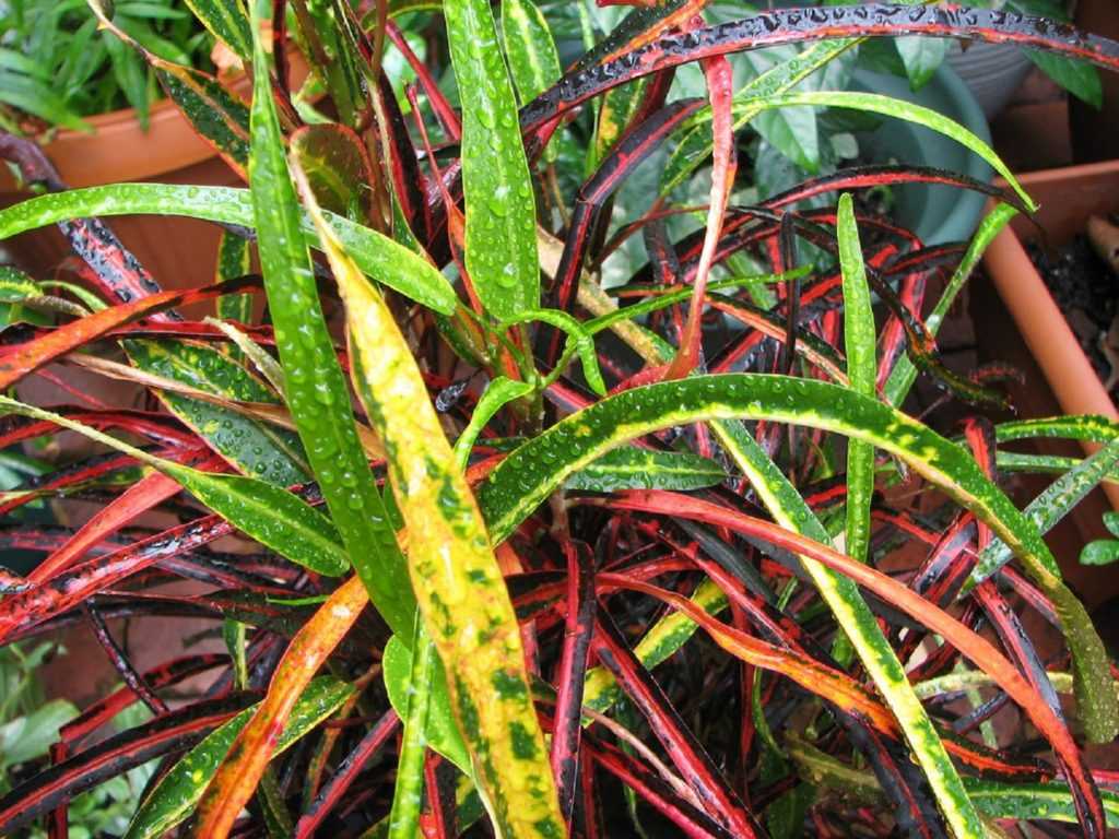 Кротон узколистный с самыми длинными листьями. Комнатные виды и сорта растения