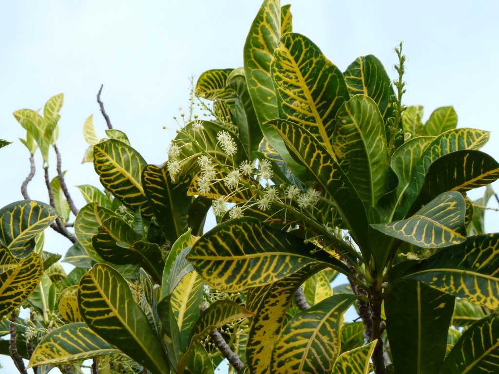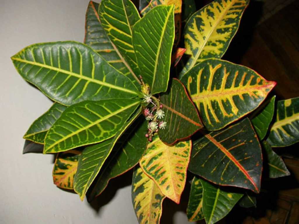 Характерной особенностью листьев кротона является способность изменять цвет листвы, но отнюдь не из-за смены времен года, а все зависит от возрастных изменений. Цветет кодиеум совершенно невзрачными, мелкими цветочками, лучше их удалять за отсутствием декоративности, а кротон не тратил сил на их развитие.