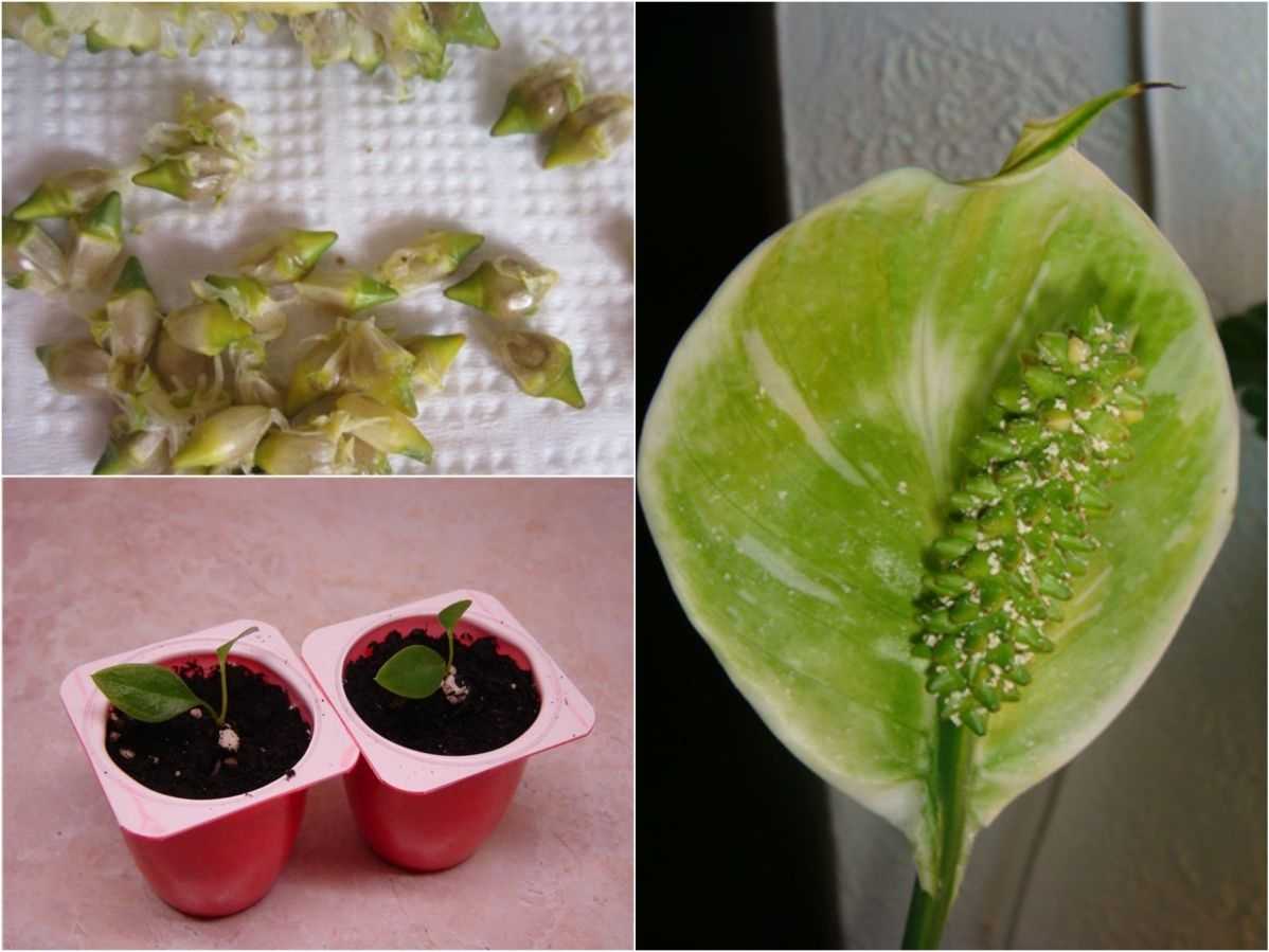 Семенной способ отнимает много сил. Получить семена, способные прорастать, от материнского растения крайне трудно из-за искусственного опыления и стремительной потери их всхожести. Также, семенной метод не предполагает передачи признаков маточного растения. Цветение спатифиллума при таком размножении наступит через 3-4 года. При этом есть шанс, что вырастет отличный от выбранного сорт.