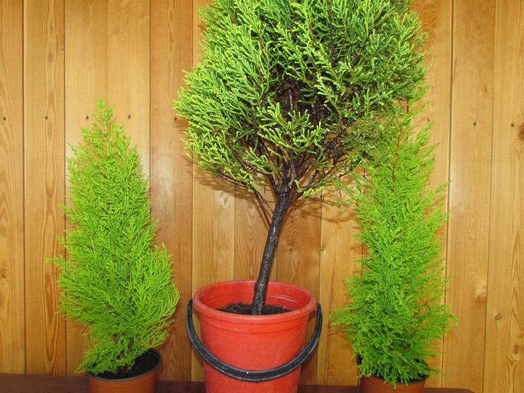 - Туя (западная или составная). На самом деле существует довольно много разновидностей туи, но эти две считаются частыми гостями домашних цветников. Эти виды отличает форма кроны, богатство хвои и ее мягкость. Если вы относите себя к любителям красивых комнатных растений, вам стоит подумать о приобретении туи.