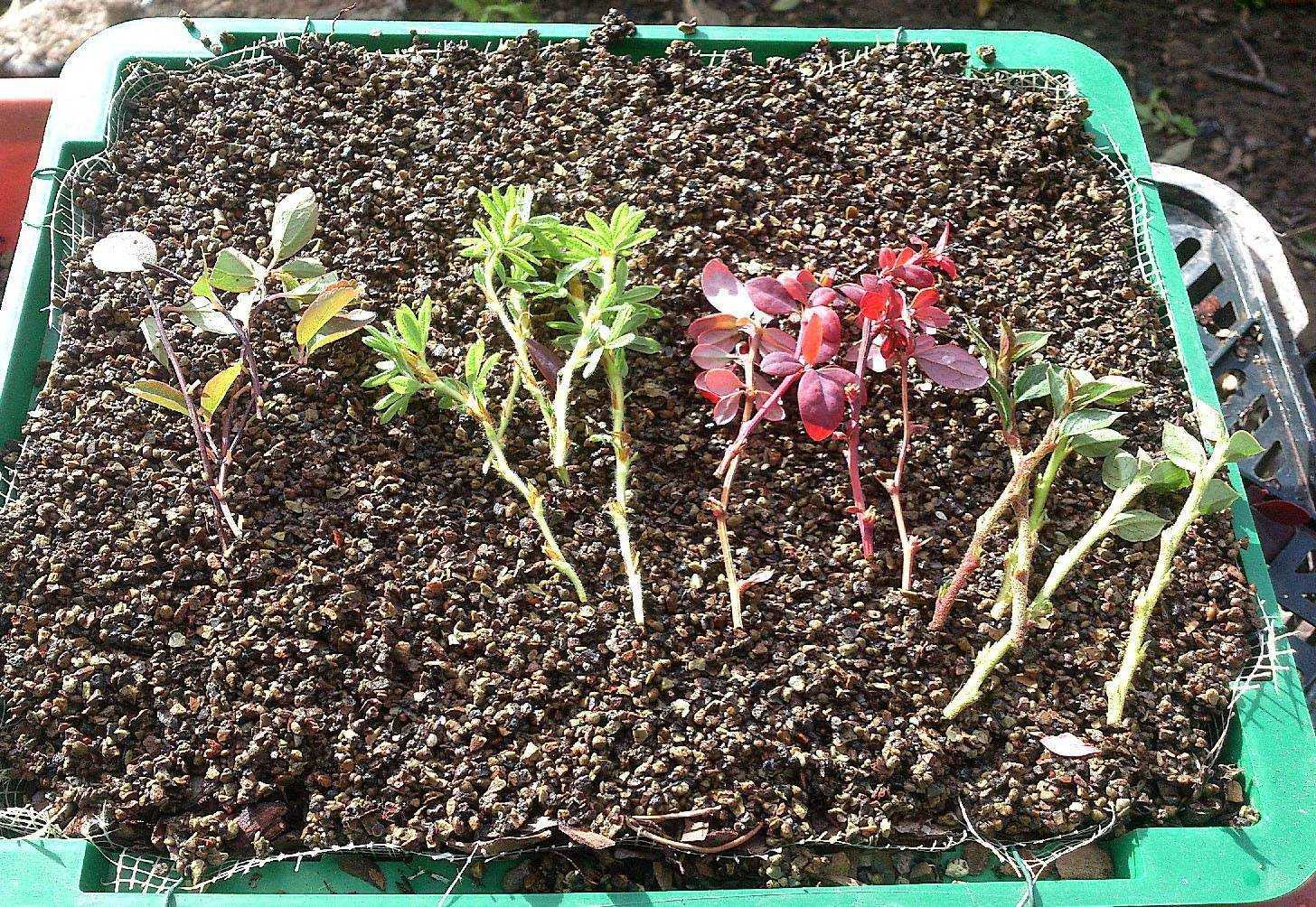 Черенки для улучшения образования корней замачивают в растворе препарата «Корневин» и высаживают в грунт, приготовленный из следующих ингредиентов: