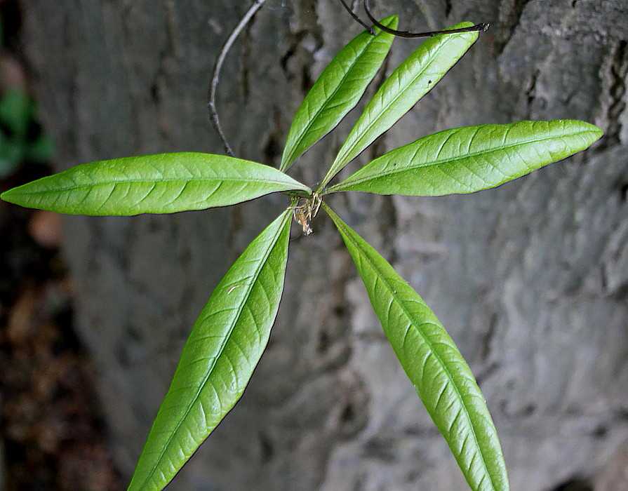 - Название появилось в результате своей специфической формы листа. Сам лист тонкий, блестящий, с пятью заостренными краями с каждой стороны листа.
