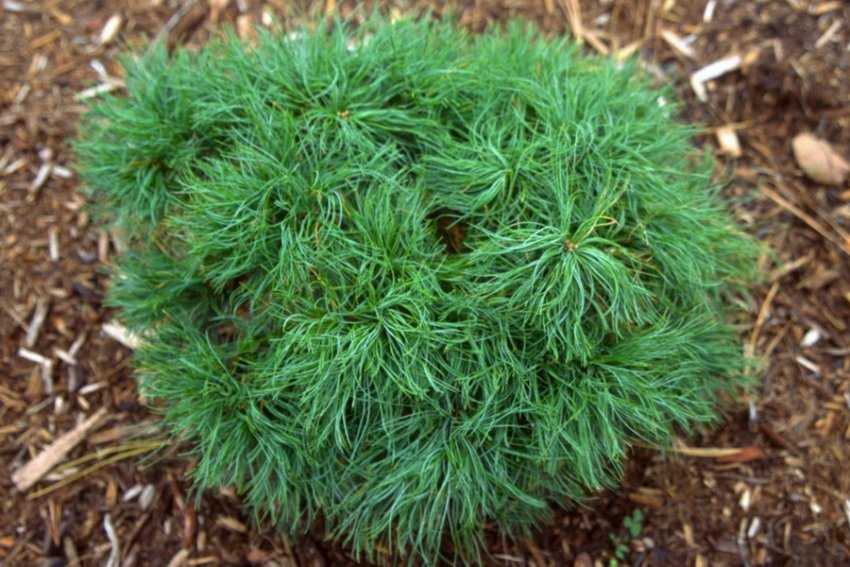- Блю шег (Blue Shag). Еще один карликовый сорт, пригодный для озеленения небольших участков. Деревце с густой шаровидной кроной вырастает до 1,2 м, имеют длинную синевато-зеленую хвою. Отличается неприхотливостью к составу почвы, на которой растет, но не выносит засух.