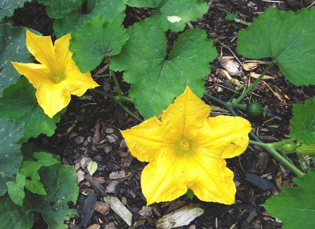 Для получения более раннего урожая следует выращивать 20-25 дневную рассаду так же, как и огурцов. Рассаду высаживают после окончания заморозков (10-15 июня). Расстояние между лунками 50-70 см, в каждую лунку высаживают по два – три растения. Техника посадки рассады такая же, как и огурцов. Сеют семена в лунки по 5-8 шт., а после прореживания оставляют два – три растения. Поливы проводят регулярно и только теплой водой. После каждого полива необходимо почву хорошо рыхлить. Длинноплетистые сорта тыквы лучше располагать по кромке огорода, а короткоплетистые можно выращивать внутри огорода на расстоянии 1 м.