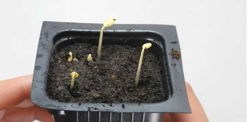 После замачивания семян и их набухания, материал переносят в теплое место и ждут, пока они не проклюнутся. Ростки появляются в течение 2 дней. Такая процедура не обязательна к проведению, но значительно увеличивает шансы на выращивание.