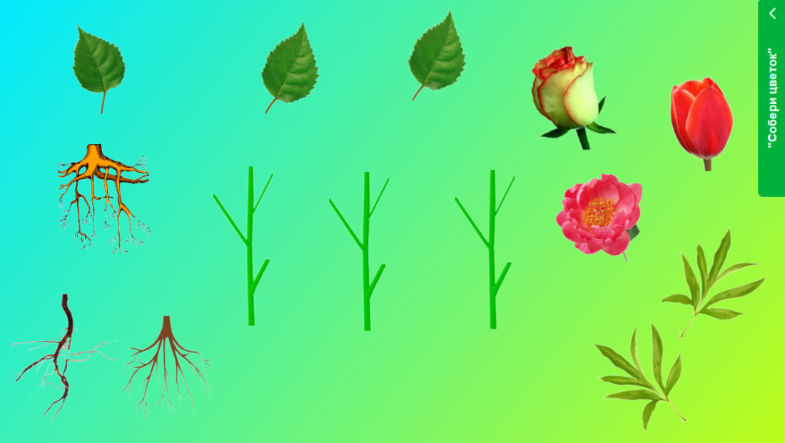 Для игры требуются разделенные на части картинки, каждая часть — определенный орган растения: стебель, корень, листья, цветки. Игровая задача — составить растение из частей картинки