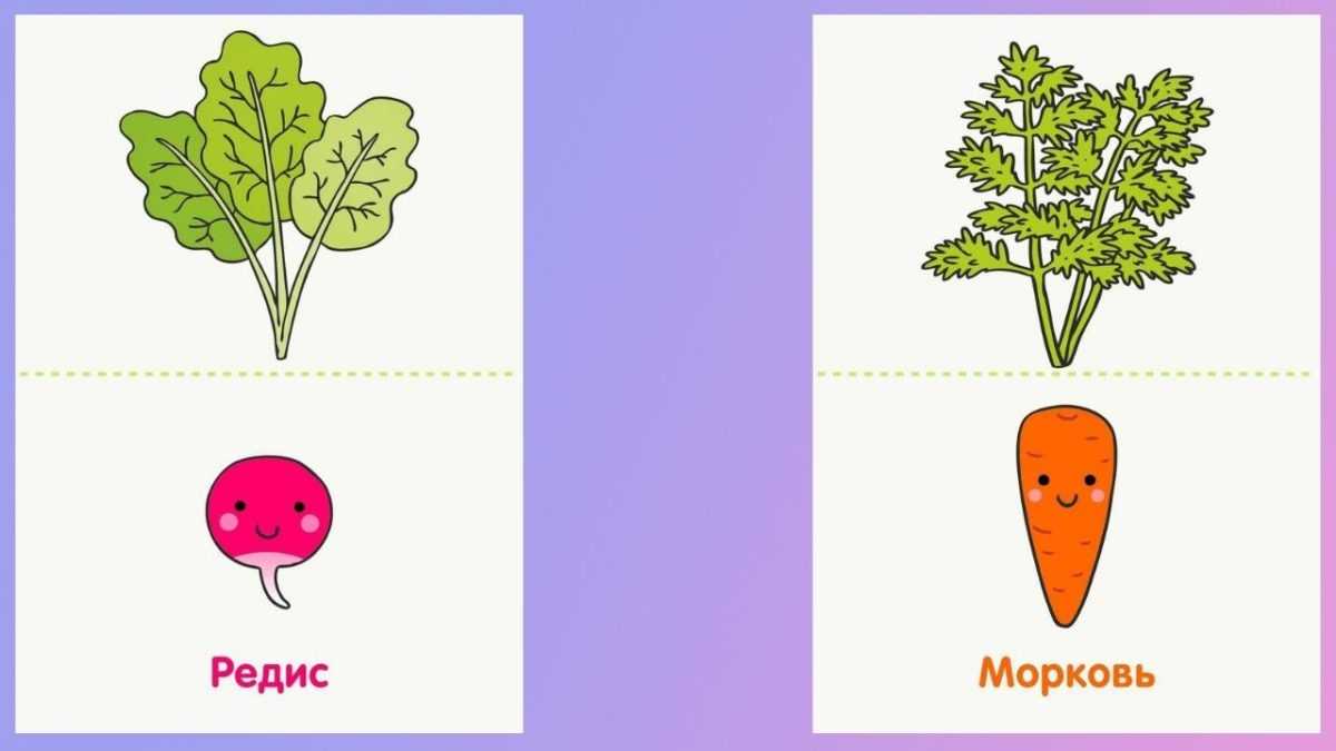 - Воспитатель кладет на пол хулахупы так, чтобы они немного пересекались. Хулахуп одного цвета предназначен для овощей, второго — для корнеплодов. А в зону пересечения игроки должны положить изображения тех культур, у которых съедобны и надземные, и подземные части. Игроки по очереди берут картинку, кладут в нужное место, аргументируют решение.