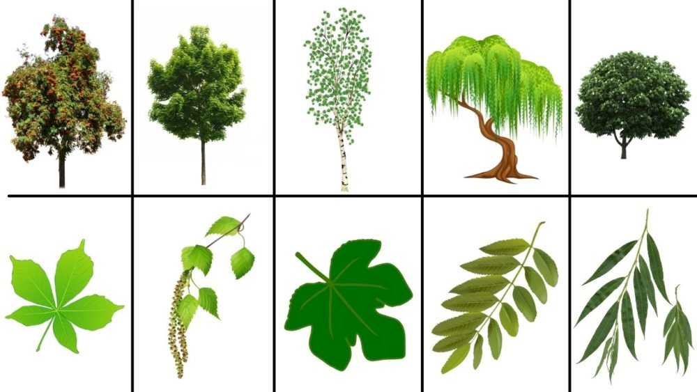 Игра учит определять внешние признаки разных видов деревьев. И главный признак — листья. Для игры нужно подготовить картинки деревьев и соответствующие изображения листьев. Либо собрать и высушить реальные листья: березовые, осиновые, рябиновые, ивовые, дубовые, кленовые и прочие.