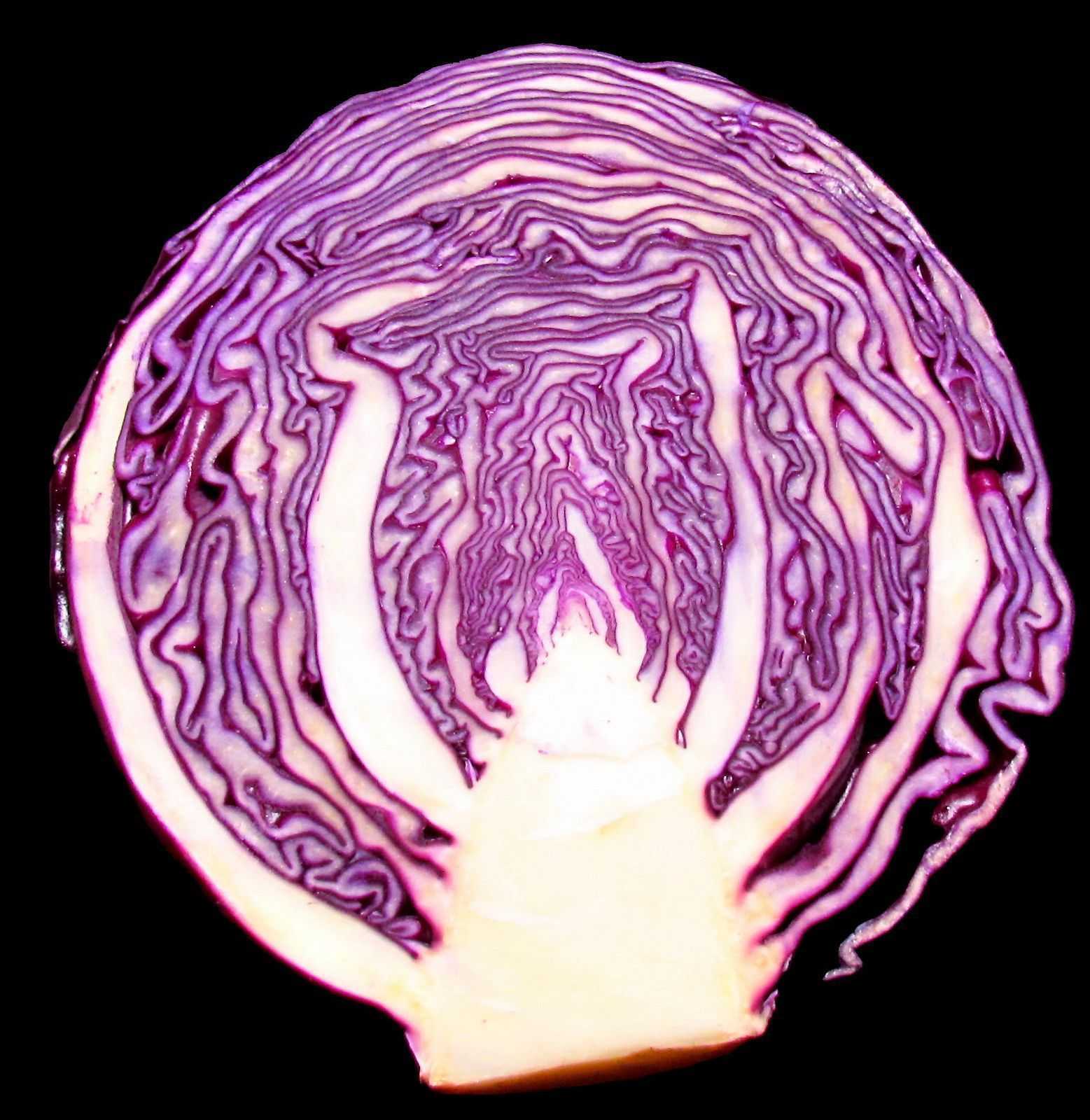 Окрас придают антоцианы. Хотя название не всегда верно, часто капуста сиреневого или фиолетового цвета. Оттенок зависит от количества пигмента. Польза вещества для человека обусловлена укреплением стенок сосудов, предотвращением малокровия, нормализацией артериального давления.
